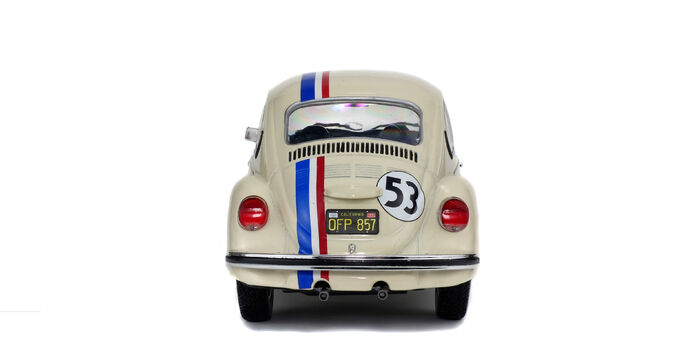 Miniature VOLKSWAGEN Beetle 1303, Racer 53, Matière : Métal, Fabricant : SOLIDO, Modèle avec ouvrants, Echelle : 1/18. Coloris : Ecru.